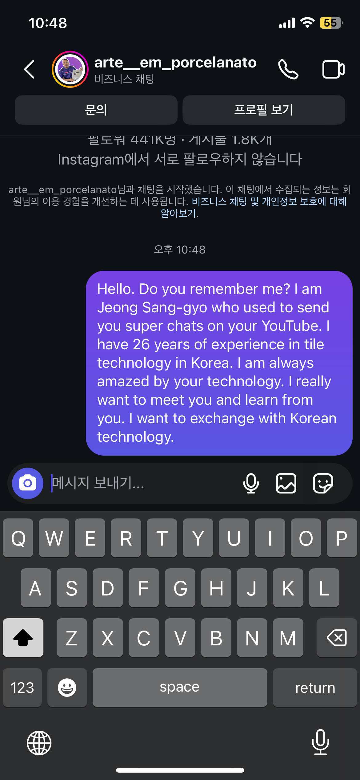 한국의 기술과 정보를 교류하자는 요청을 하였다